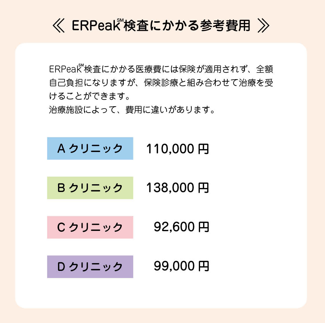 ただし、胚が着床しない原因は、染色体に問題があることも多いため、あわせてPGT-Aで胚の染色体数を調べる場合もあります。移植可能胚が少ない場合は、PGT-AよりERPeak検査を優先することもあります。