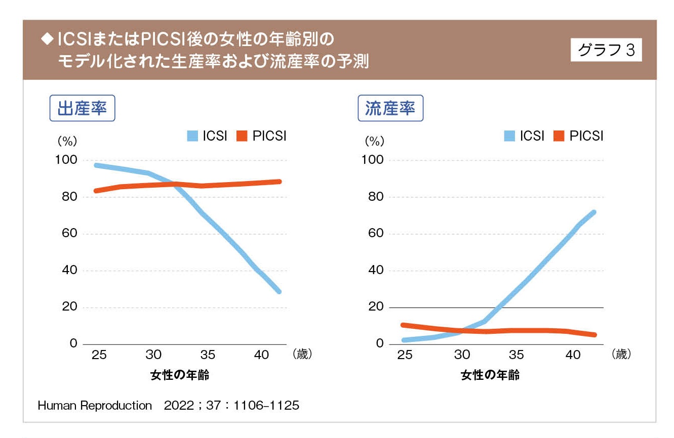 胚の発育の向上、流産率の低下が期待できます。一般的に、女性の年齢が高くなるにつれて卵子の質が低下していきますが、PICSIを行うと、年齢は高くても流産率が下がるため、精子の質も重要視されています。